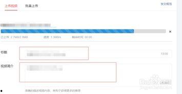 3. 填写信息:在视频上传页面,填写视频标题、、简介等基本信息。